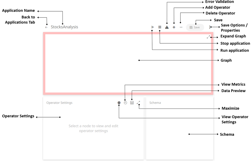 When an operator has been added or a node is selected in the application graph, the corresponding operator settings are displayed in the Operator Settings panel to allow editing.