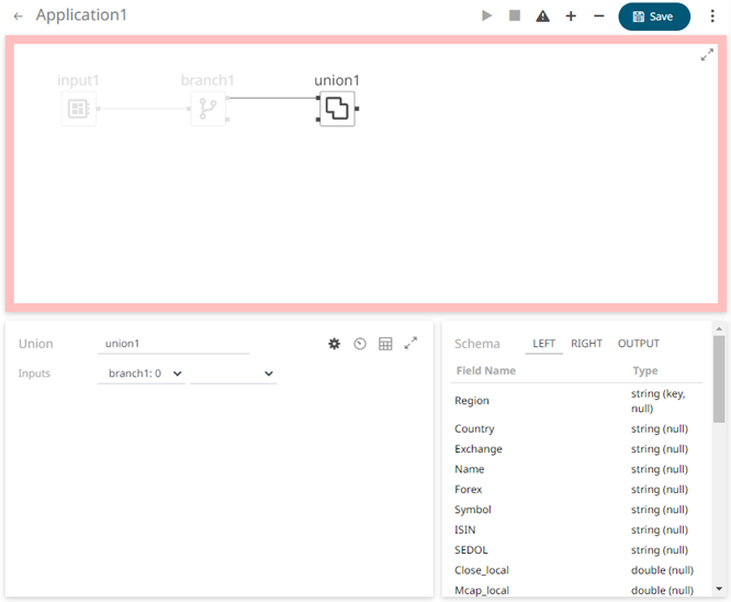 Used to perform a union of two streams. Both streams would need the same schema. Otherwise, the output would be the combination of both, with missing values returned as Null.