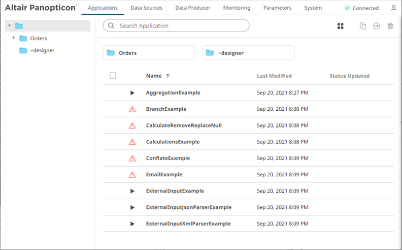 · Before starting an application, ensure: o the CEP engine has been started o the prerequisite data sources are uploaded on the Data Sources tab o the application model is defined correctly · If the application is empty,