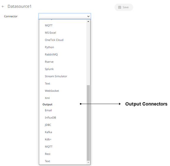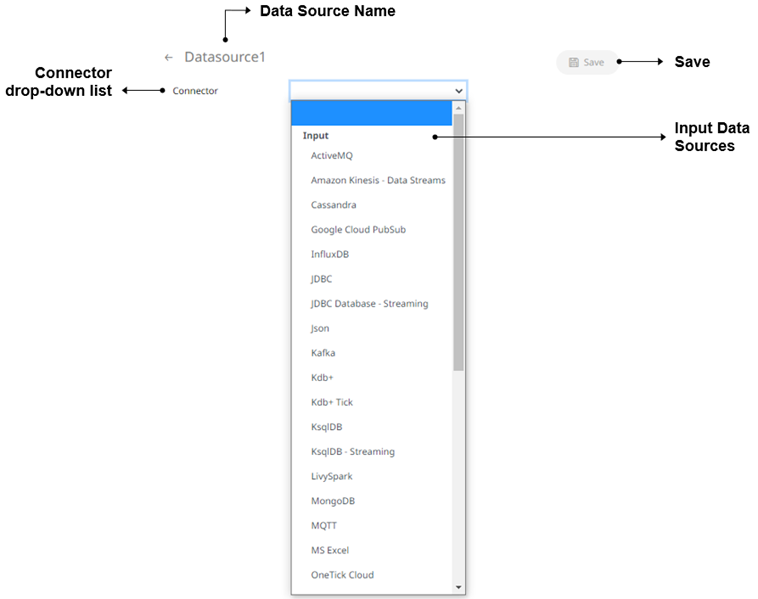 Panopticon Streams supports creation of data sources that can be used as inputs or outputs in the application model.