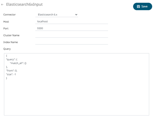 1.     In the New Data Source page, select Input > Elasticsearch 6.x in the Connector drop-down list.