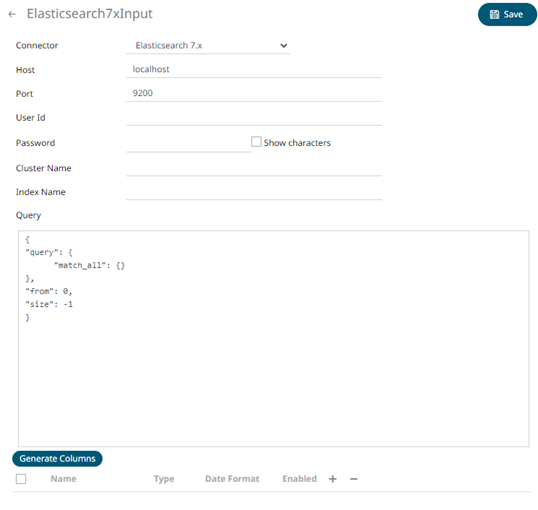 1. In the New Data Source page, select Input > Elasticsearch 7.x in the Connector drop-down list.