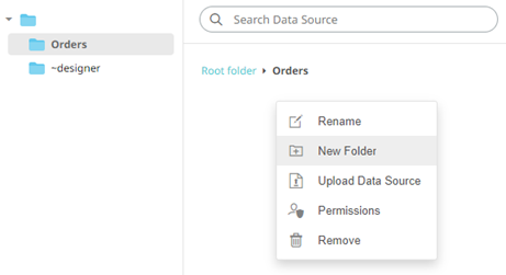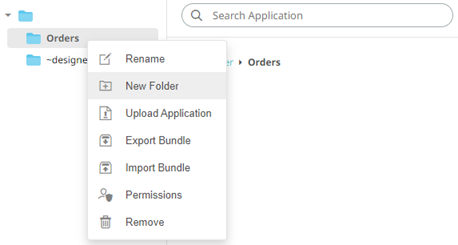 2. Right-click on the folder or on the Applications pane or Data Sources pane and select New Folder.