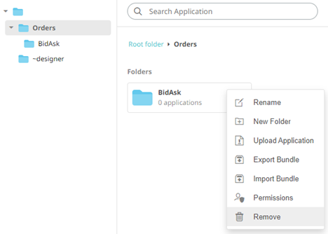 3. You can also opt to delete a subfolder by right-clicking on the folder and selecting Remove on the context menu as long as it does not contain applications or data sources.