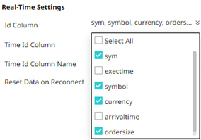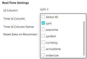 Consequently, on the Real-Time Settings section, the Id Column drop-down list displays with the set of columns, of arbitrary type.