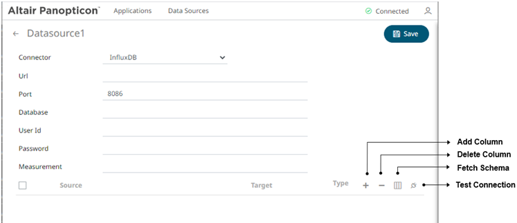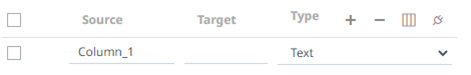 · Source The column name of the source schema. · Target The column name of the target schema. · Type The data type of the column. Can be a Text, Numeric, or Time. |
