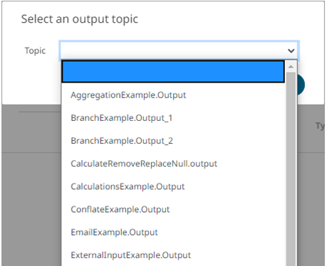 Allows you to select an output topic in the drop-down list.