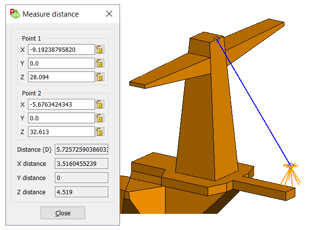 The measure distance tool allows you to measure or validate the physical distance between two points in a model.