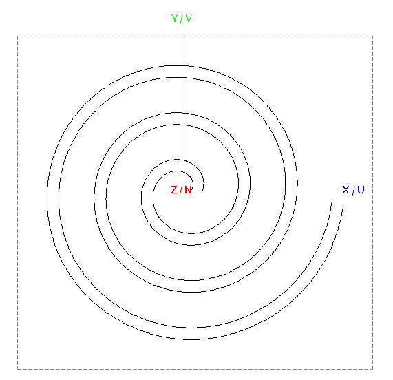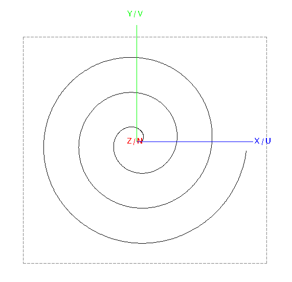 Figure 4. Top view of the lofted surface (spiral) showing half of the feed at the centre.