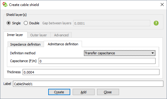 The transfer capacitance shield layer is used with a braided and frequency-dependent impedance definition to represent the transfer admittance matrix of the shield layer.