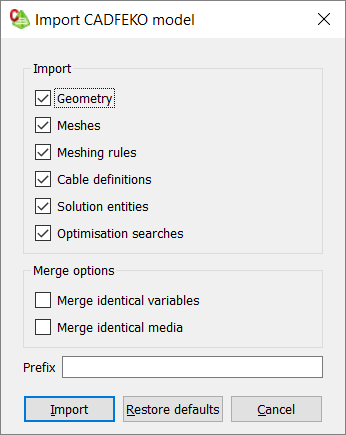 Import an existing CADFEKO model (.cfx file) into a CADFEKO model.