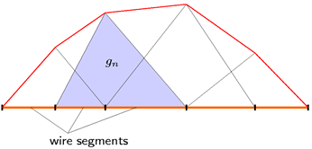 Figure 2. Linear roof-top basis functions for wires modelling current across the wire vertices.