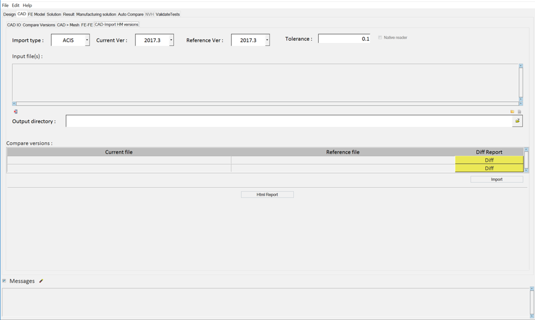 For all CAD files supported in HyperMesh, data read into HyperMesh can be compared across HyperMesh versions.
