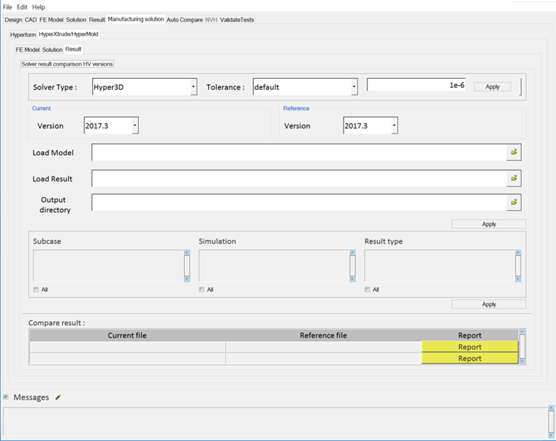 - Verification of the reference result files across two versions of HyperView (with the same solver version results).