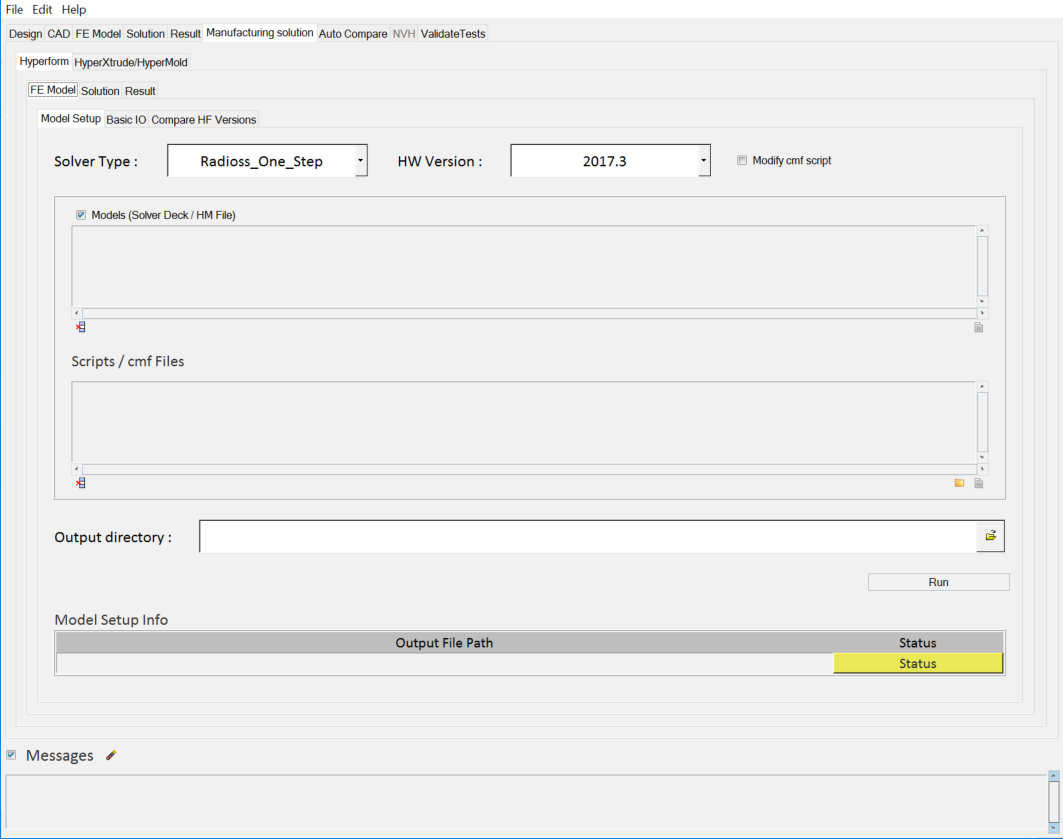 Tip: If Modify cmf script is activated, it replaces all HyperWorks paths with the selected HyperWorks version and generates a new copy of cmf file(s).