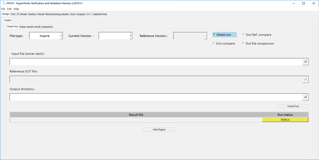HyperWorks Verification and Validation Harness (HVVH) is a tool that can be used to verify and validate HyperWorks products. End users can use this tool to quickly evaluate the software quality, performance, reliability, scalability, and robustness, and to gain more confidence in HyperWorks products.