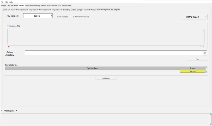Here, both sets of results are loaded through the template and results are compared across solver versions or design iterations are executed.