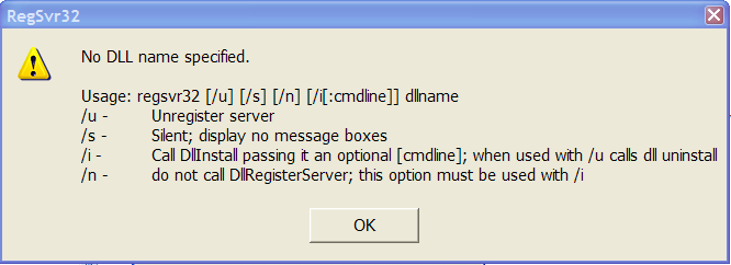 Place the path in quotations. For example, to register the HVPControl.dll enter: