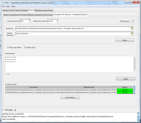 1. From the Result tab, select the Compare HG Versions - Template-Session tab.