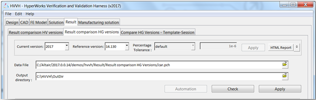 5. In the Data File field, click the file browser icon, , to load the car.pch file, located in ..\tutorials\hvvh\Result\ResultcomparisonHGVersions\ file.