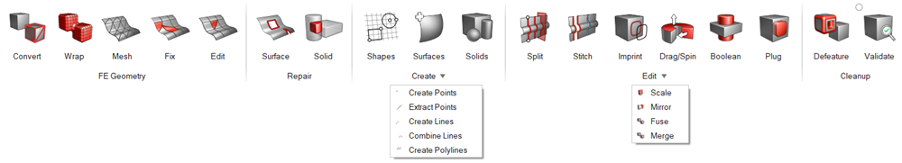 Geometry Create, edit, and cleanup geometry. Attention: The icons shown on the ribbon below are used to complete this workflow. Click an icon to learn more about the tool.