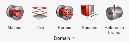 Figure 7.The Domain sub-section contains tools for assigning reference properties such as materials, heat and momentum sources, reference frames, etc. to volumes.