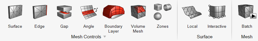 Meshing parameters such as surface mesh controls, boundary layer parameters, volume mesh parameters, and zone meshing parameters can be defined here. This ribbon also has tools for local remeshing. Once all the mesh controls are defined, you can generate the mesh using the Batch tool.
