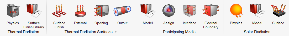 The Radiation ribbon is where you define radiation physics, create thermal, solar, and participating media models, and apply radiation parameters.