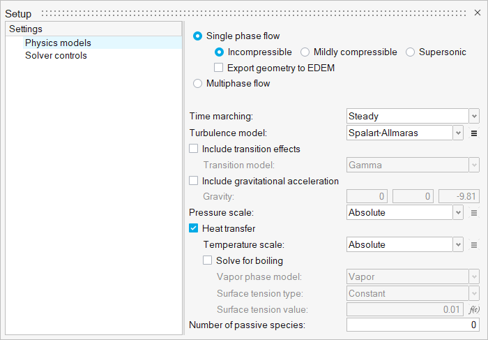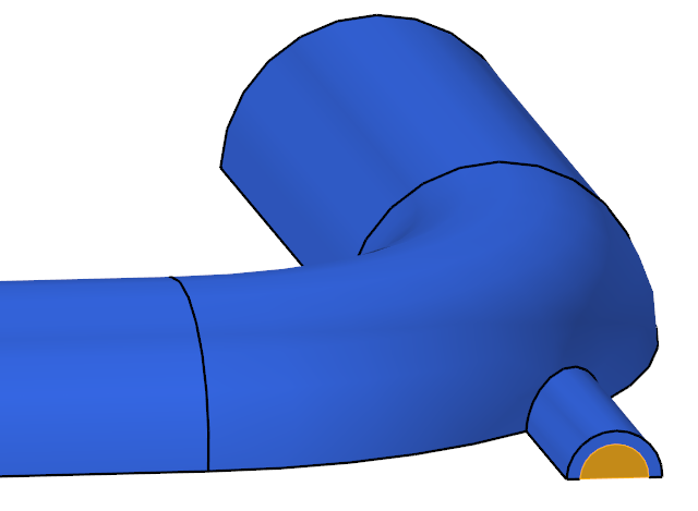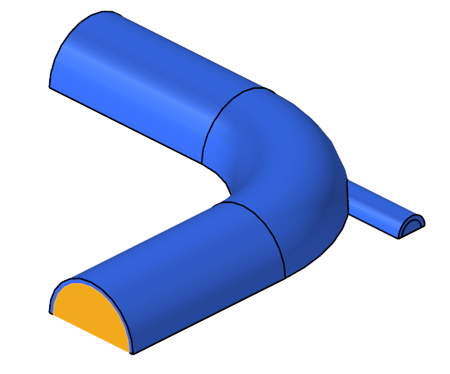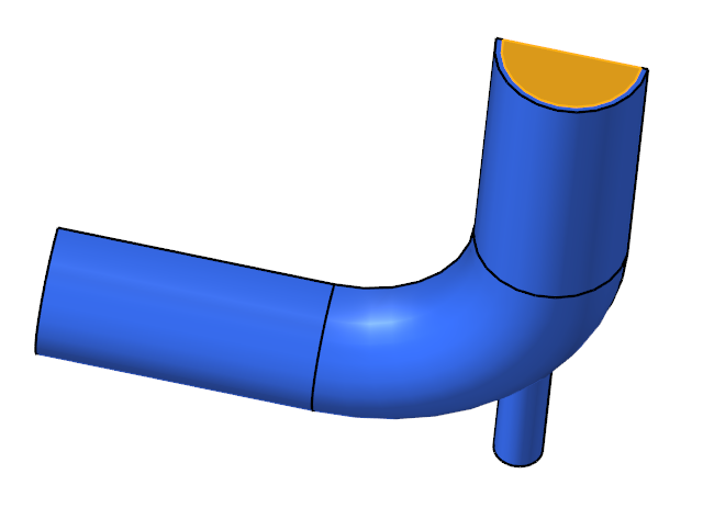 This geometry is symmetric about the XY midplane, and can therefore be modeled with half of the geometry. In order to take advantage of this, the midplane needs to be identified as a symmetry plane. The symmetry boundary condition enforces constraints such that the flow field from one side of the plane is a mirror image of that on the other side.