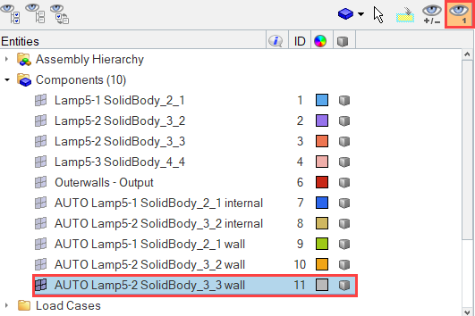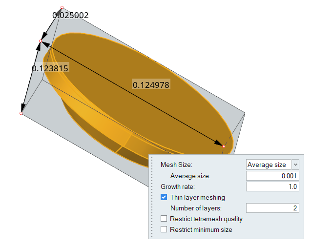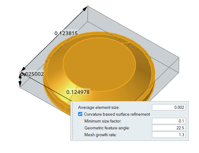Since the thickness of the housing and the lens solids are small, you will use the thin layer meshing tool so that when the volume mesh is generated, there will be two layers across the thickness of those solids.