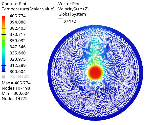 Display Temperature Contours and Velocity Vectors on a Section Cut