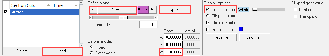 In this step, you will create a section cut on the mid-z plane and then display the temperature and velocity vectors on that cross section.