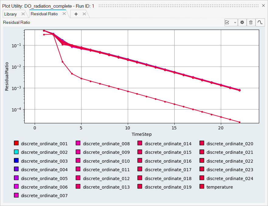 In this tutorial, you learned how to set up and solve a radiation heat transfer simulation using the Discrete Ordinates radiation model. You started by importing the HyperWorks CFD input database and then defined the flow and radiation setup. Then, you generated the mesh and submitted the AcuSolve simulation. Once the solution was computed, you created a plot of residual ratios using the plot utility in HyperWorks CFD. Finally, you created a contour plot of temperature distribution on a section cut using HyperWorks CFD Post.