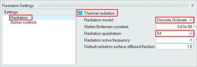 In this step, you will specify the parameters related to the thermal radiation setup.