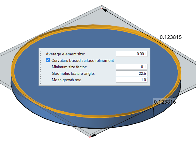 Since the thickness of the housing and the lens solids are small, you will use the thin layer meshing tool so that when the volume mesh is generated, there will be two layers across the thickness of those solids.