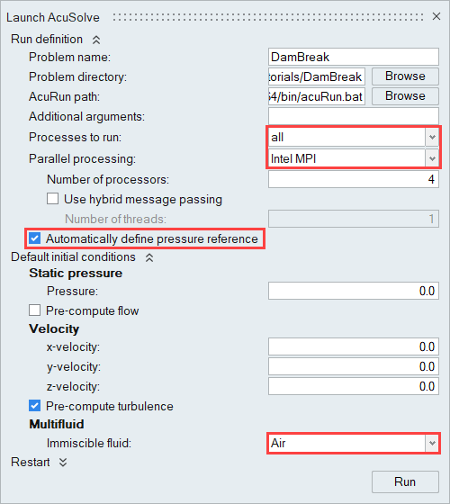 This tutorial introduces you to the workflow for setting up an AcuSolve transient dam break simulation using HyperWorks CFD. Prior to starting this tutorial, you should have already run through the introductory tutorial, ACU-T: 1000 Basic Flow Set Up, and have a basic understanding of HyperWorks CFD and AcuSolve. To run this simulation, you will need access to a licensed version of HyperWorks CFD and AcuSolve.