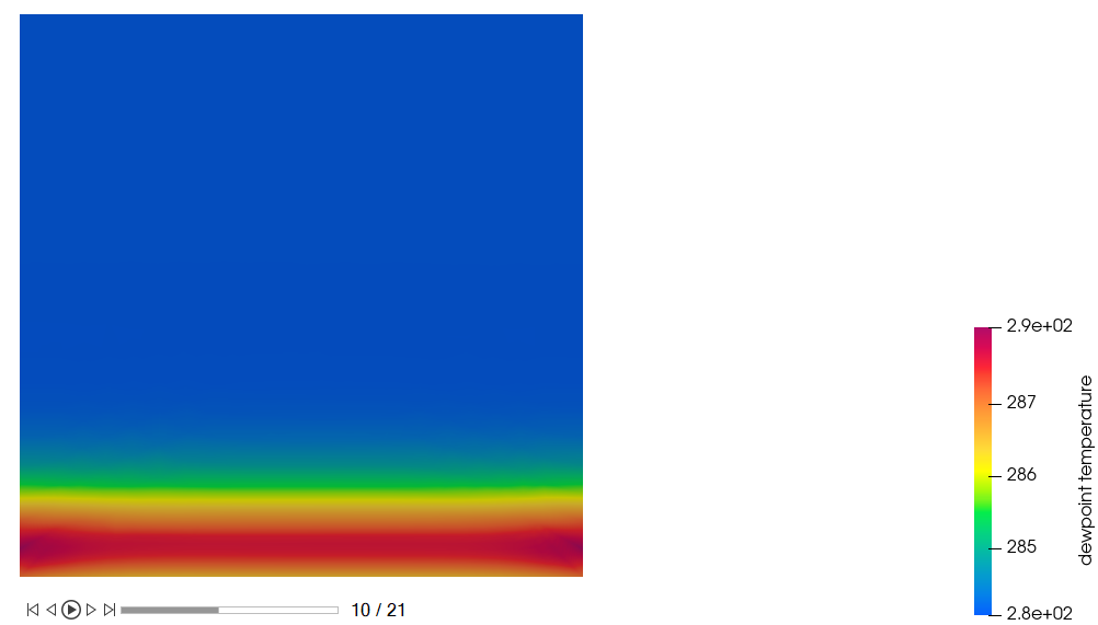 In this step, you will create contour plots for temperature, relative humidity, and dew point temperature.
