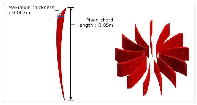 The problem to be addressed in this tutorial is shown schematically in Figure 1 and Figure 2. It consists of a centrifugal blower with a wheel of forward curved blades, and a housing with inlet and outlet ducts. The fluid through the inlet plane enters the hub of the blade wheel, radially accelerates due to centrifugal force as it flows over the blades, and then exits the blower housing through the outlet plane. Because they're relatively cheaper and simpler than axial fans, centrifugal blowers have been widely used in HVAC (heating, ventilating, and air conditioning) systems of buildings.