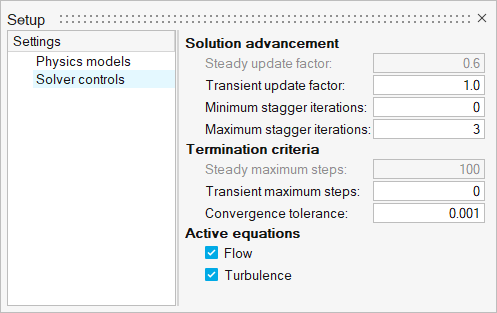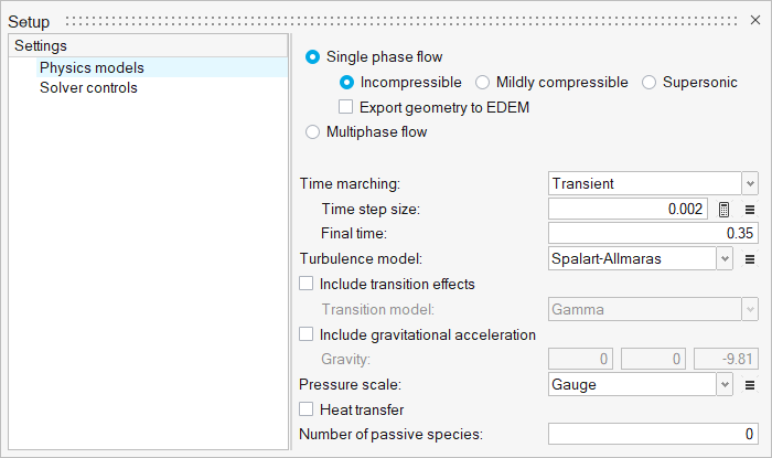 Note that the initial conditions of the flow are actually laminar, however, the increase in flow velocity and flow around the valve shutter is expected to cause a rapid transition to turbulent conditions. Therefore, the simulation will be set up to model transient, turbulent flow. When performing a transient analysis, convergence is achieved at every time step based on the defined stagger criteria. Mesh motion will be modeled using arbitrary mesh movement (arbitrary Lagrangian-Eulerian mesh motion).