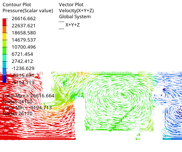 Display Pressure Contours and Velocity Vectors on a Section Cut