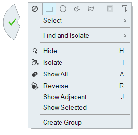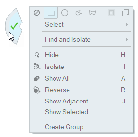 Select an option to close the menu and remain in the current active tool. Mouse through or click the check mark to exit both the menu and the tool.