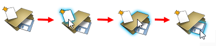 - The last image (far right) highlights the disk pick target, which allows you to save your work
