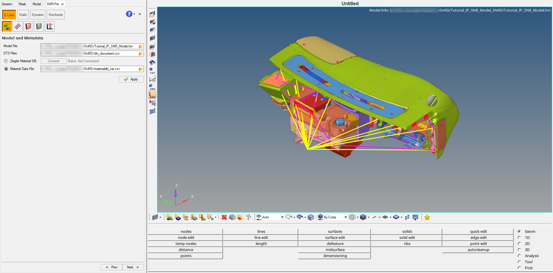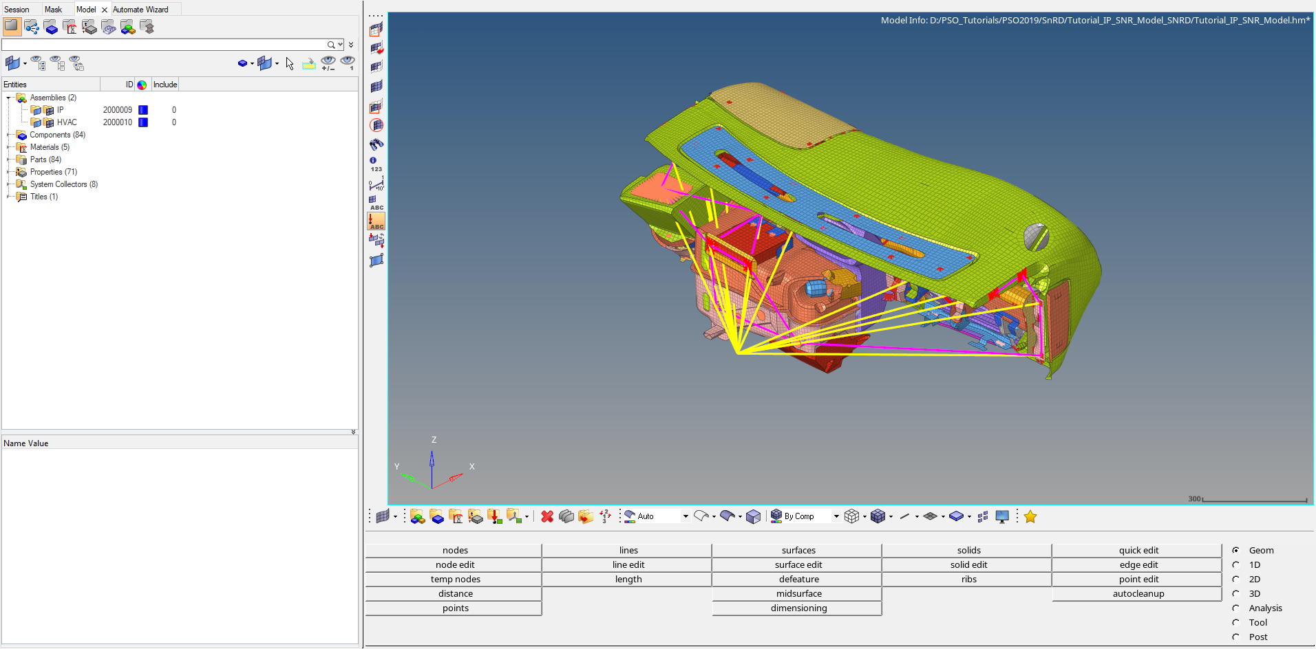 The Crash application offers a tailored environment in HyperWorks that efficiently steers the Crash CAE specialist in CAE model building, starting from CAD geometry and finishing with