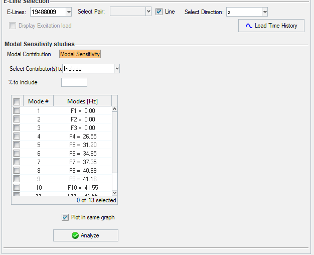 Modescolumn to select a mode - Plot in same graph - check box to define if the study plot should be plotted in the same graph as the relative displacement