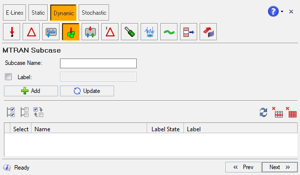 The MTRAN Subcase panel can be used to create subcases for the model. The panel is shown below: