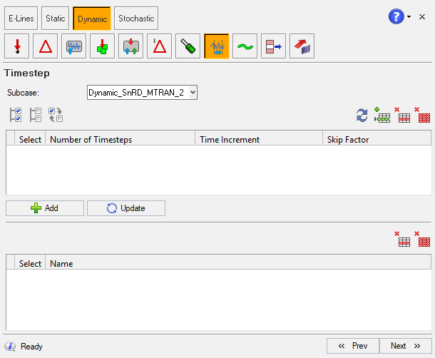 In this step you can define transient time steps for the dynamic loads that exist in the model. The panel for defining transient time steps is shown below: