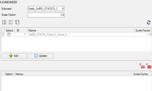 In this step you can combine static loads. The panel for LoadAdd Creation is shown below.