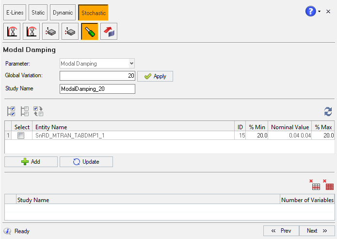 - Select Parameter - a default selection list that shows the selected parameter. In this case, Modal Damping is the value.