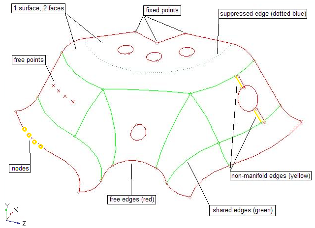 A surface represents the geometry associated with a physical part. A surface is a two-dimensional geometric entity that may be used in automatic mesh generation.