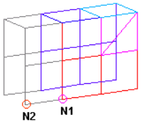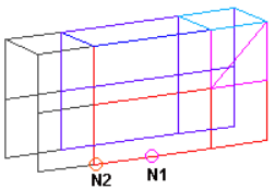 ![]() Figure 3. Elements After Translation. The selected elements have moved in the direction of N1 to N2. |